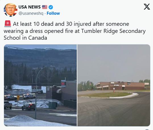 Authorities have identified 18-year-old Jesse van Rootselaar as the suspected gunman. According to reports, he allegedly killed his mother and stepbrother at home before traveling to the school. He was later found dead at the scene from what appeared to be a self-inflicted gunshot wound.