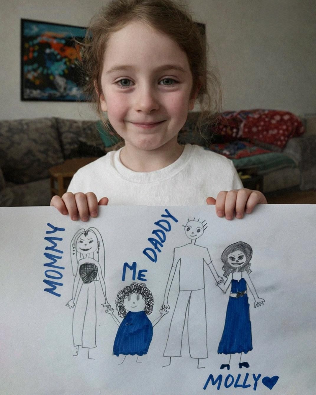 The first tremor occurred on a gray Tuesday morning during a routine meeting with my daughter’s preschool teacher, Ms. Allen. The classroom was a festive sanctuary of paper snowflakes and gingerbread men, but Ms. Allen’s expression was heavy with a caution that immediately set my nerves on edge. She slid a piece of red construction paper across a tiny table, and my heart plummeted. It was a drawing by my four-year-old, Ruby. She had drawn our family under a giant yellow star, but beside “Mommy,” “Daddy,” and “Me,” there was a fourth figure. This woman was drawn taller than me, with long brown hair and a bright red dress. Above her head, in bold, shaky letters, Ruby had written the name: MOLLY.